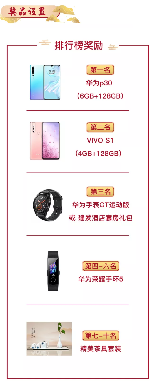 ▲ 在游戲截止時(shí),成功完成拼圖數(shù)最高的前十名玩家可獲得對(duì)應(yīng)的排行榜獎(jiǎng)勵(lì),第一名為華為p30(6GB+128GB)手機(jī)。